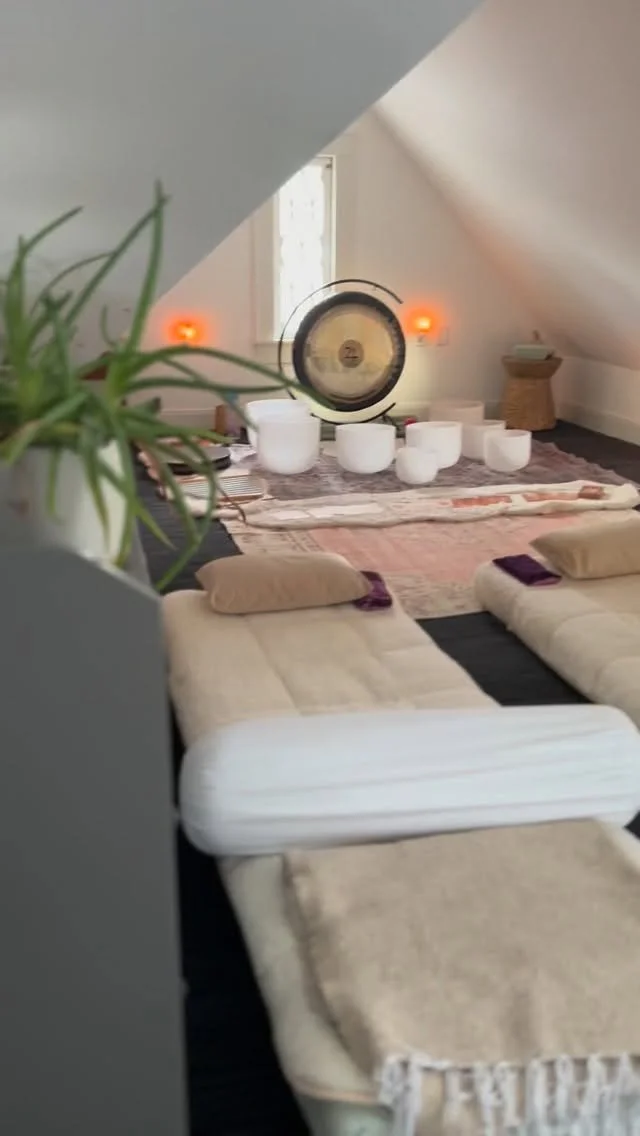 Using crystal singing bowls, gongs, chimes, and other instruments, I create gentle, immersive tones that support the nervous system, helping the body shift into rest, regulation, and repair.