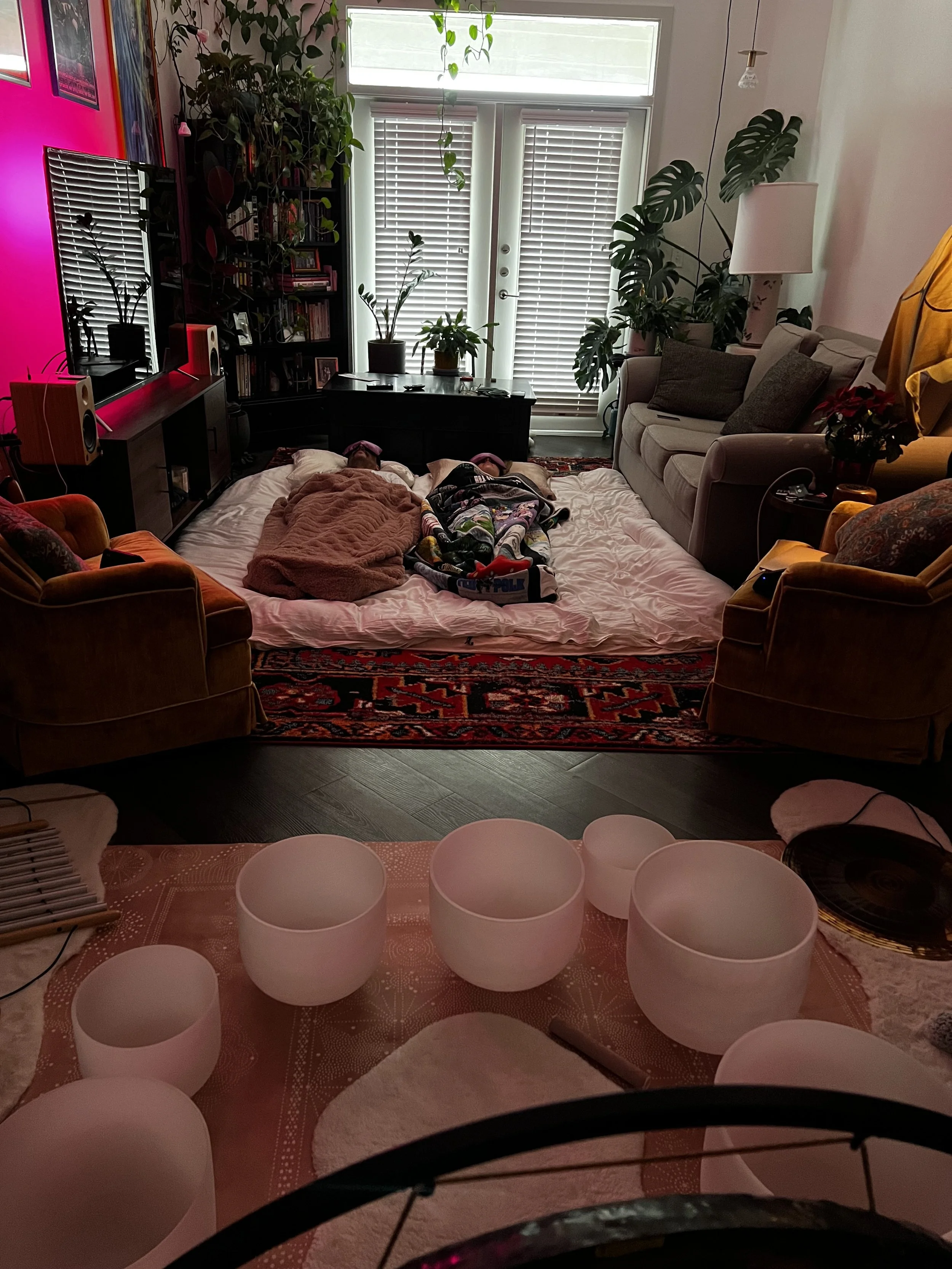 I bring a deeply intentional and trauma-sensitive approach to my sound baths, ensuring a safe and supportive space where participants can fully relax and receive. My sessions go beyond just playing instruments—they are designed to create a profoundly calming and restorative experience that nurtures both the mind and body. With a focus on nervous system support and deep relaxation, I offer a sound bath that is truly an invitation to rest and renewal.