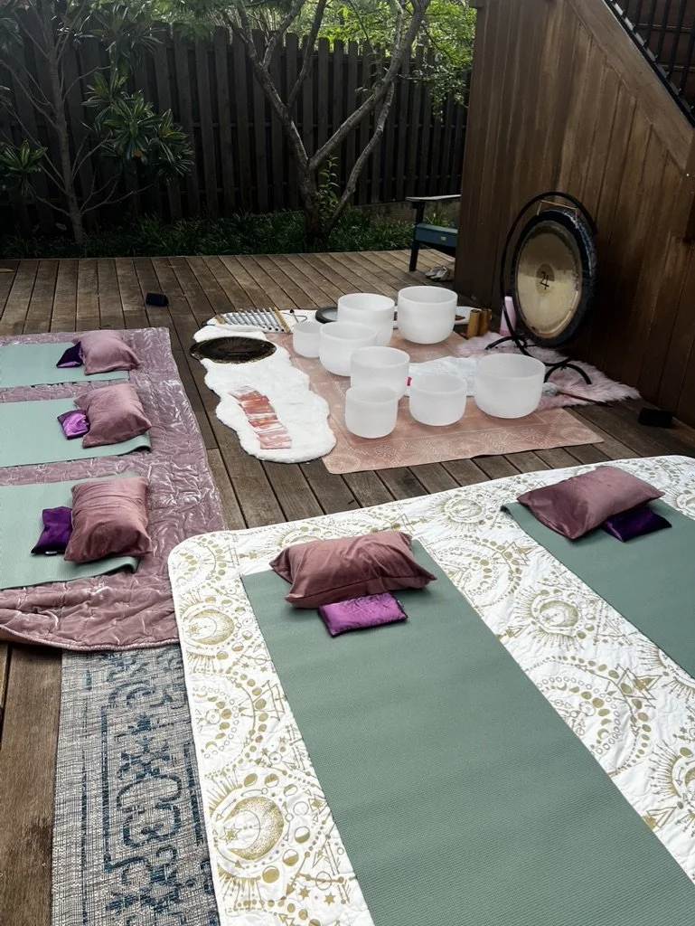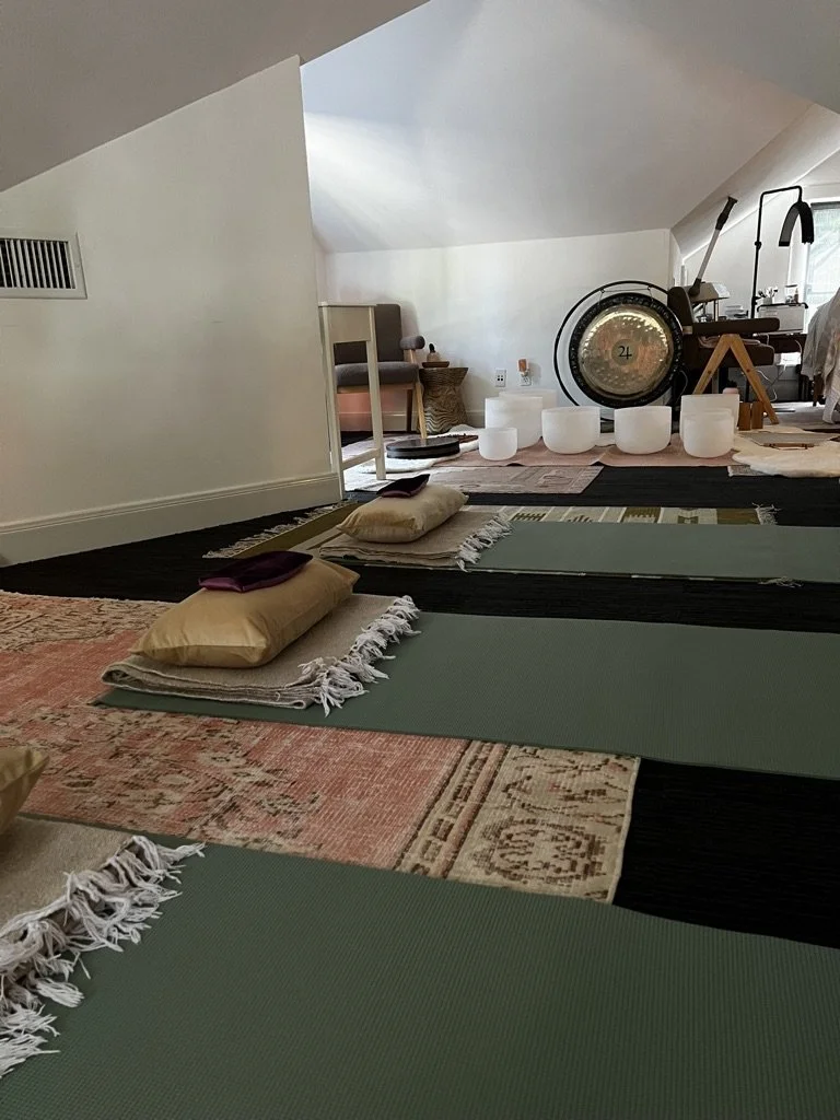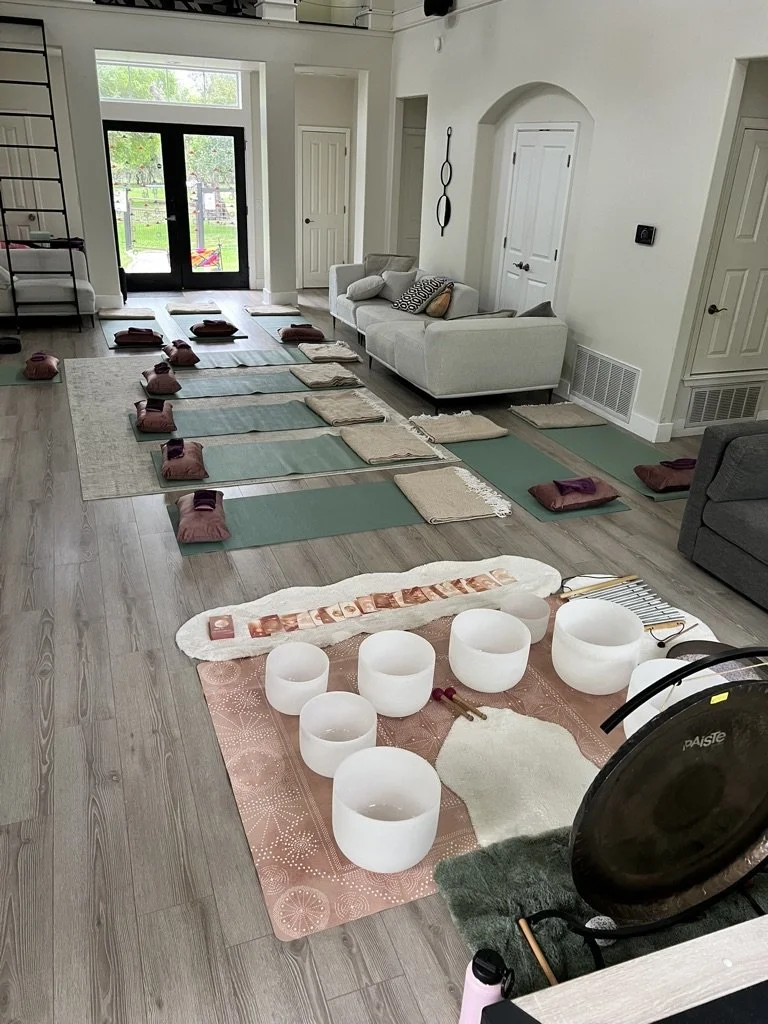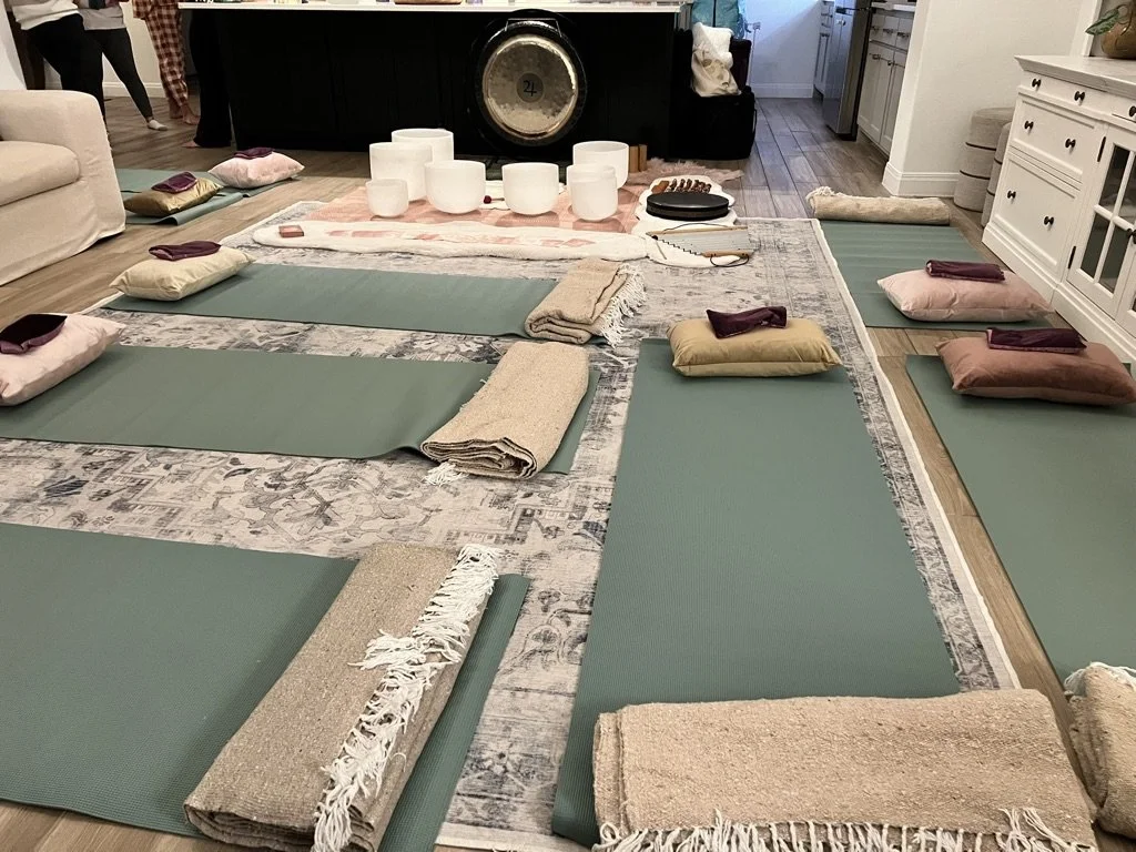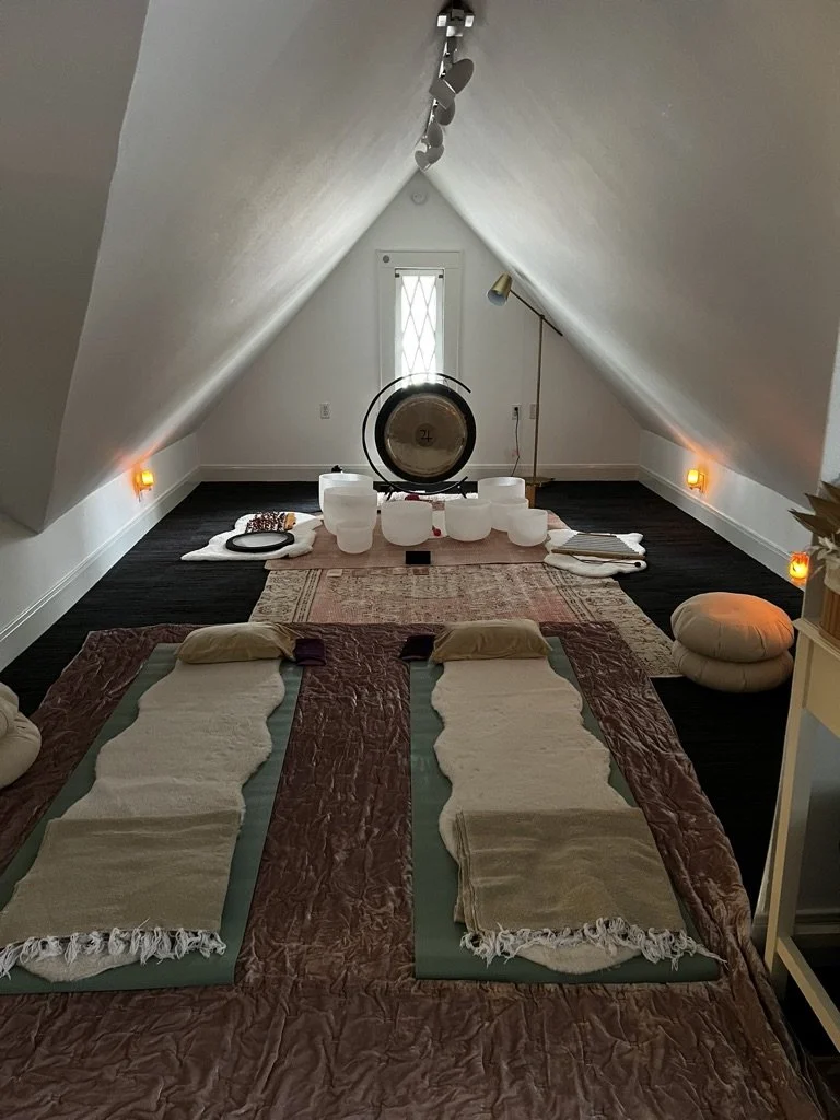 If you’d like me to provide the recommended items for your group, please indicate this on the request form. I will bring and set up everything needed before the sound bath begins, including: - A yoga mat